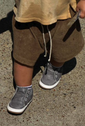 The Stylish Steve Soft Soles in Grey are made with a genuine leather upper for a polished look and a soft suede outsole that's ideal for early walkers. This grey style brings a cool, modern edge to baby basics, versatile enough for everyday wear, yet thoughtfully designed down to the details. The roomy fit supports natural foot development, while the suede sole offers just the right amount of grip for infants and toddlers finding their footing.